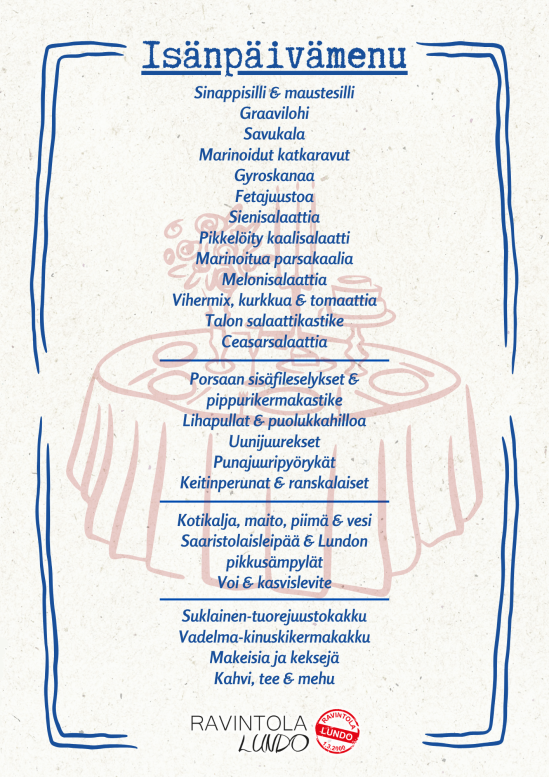 Katamme juhlapöytään parasta myös yksityistilaisuuksia varten. Kokoukset, perhejuhlat tai illanvietot onnistuvat niin ravintolassamme kuin myös asiakkaan omassa juhlatilassa tai kotona.